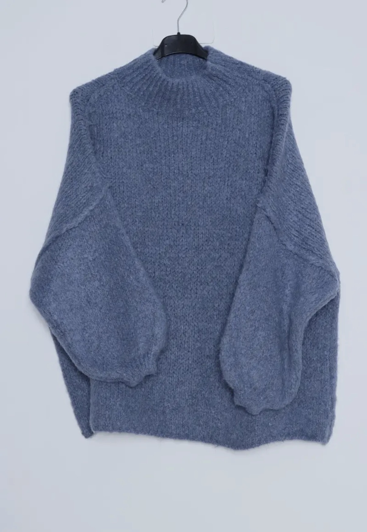 Lockerer Damenpullover mit flauschiger und dicker Textur, ideal für kaltes Wetter. Der Kragen ist hoch und sorgt für einen zusätzlichen Hauch von Wärme. Die Ärmel sind breit und lang und fallen leicht über die Hände. Der Pullover hat eine entspannte und sehr bequeme Passform, perfekt für einen gemütlichen und lässigen Look.